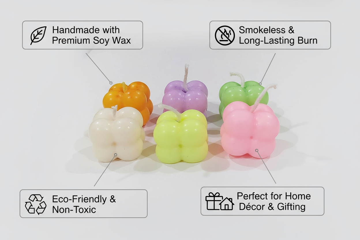 Handcrafted Bubble Candle Set – Minimal Decorative Soy Wax Candles (Pack of 6)