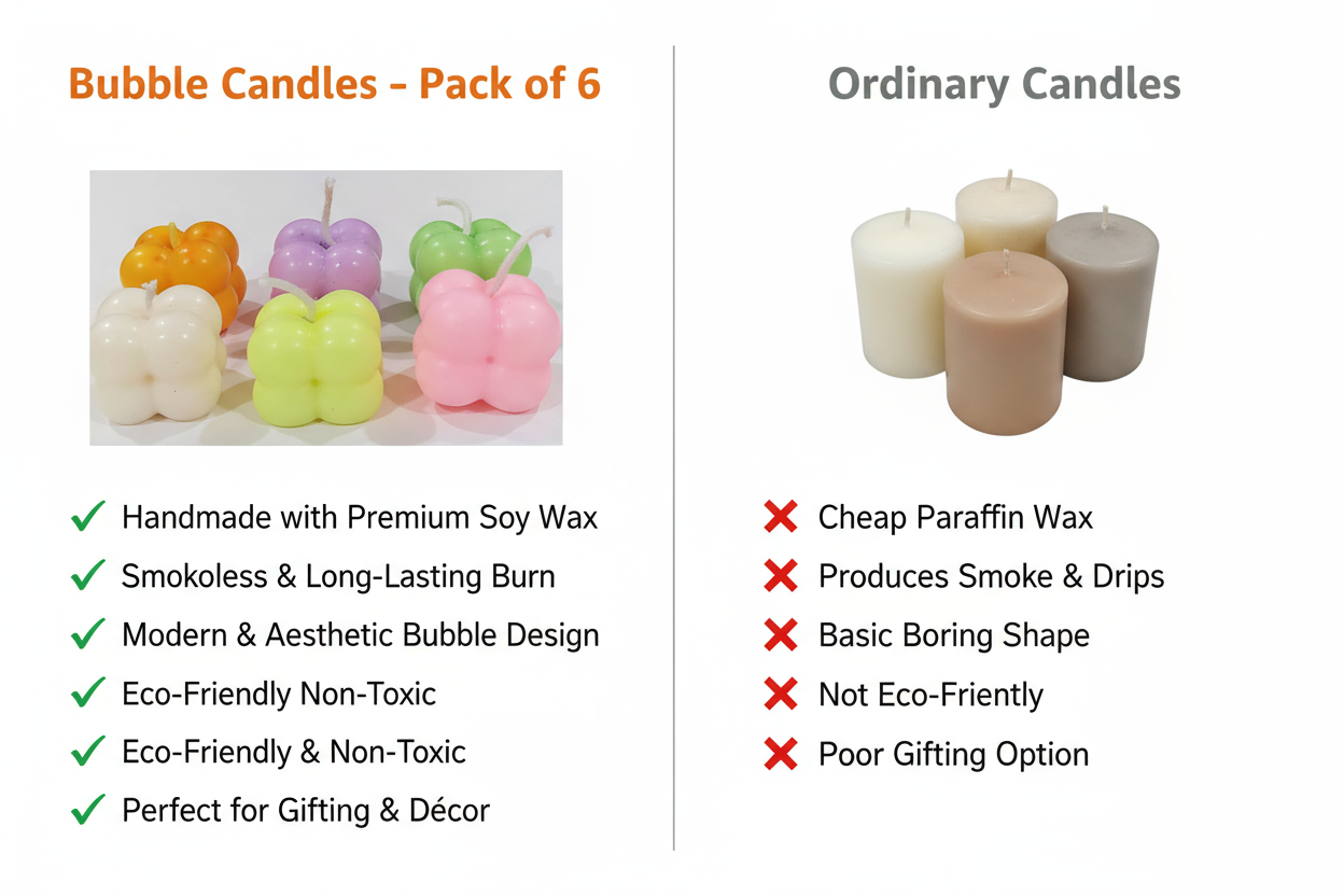These candles don’t just illuminate; they elevate your space. Their clean lines and minimalist aesthetic make them perfect for styling coffee tables, side shelves, or festive setups. Whether you light them to relax, photograph them for your setup, or gift them to someone special, these bubble candles bring warmth and sophistication wherever they’re placed.