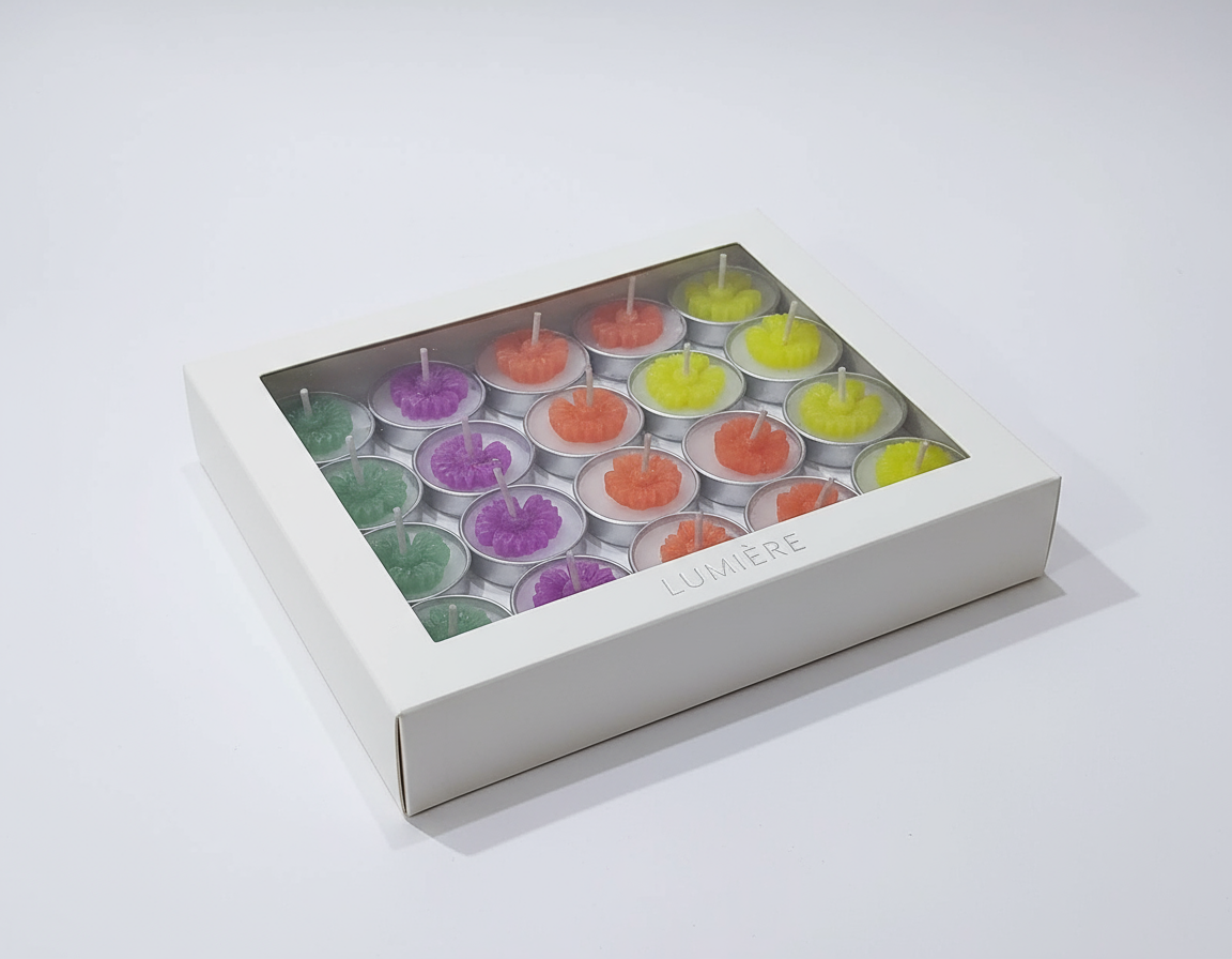 Our Colourful Tealight Flower Candles – Pack of 20 are designed to bring vibrance, warmth, and beauty to every occasion. Each handcrafted candle features a delicate flower design that glows with rich hues when lit — creating a festive, welcoming atmosphere in your home.